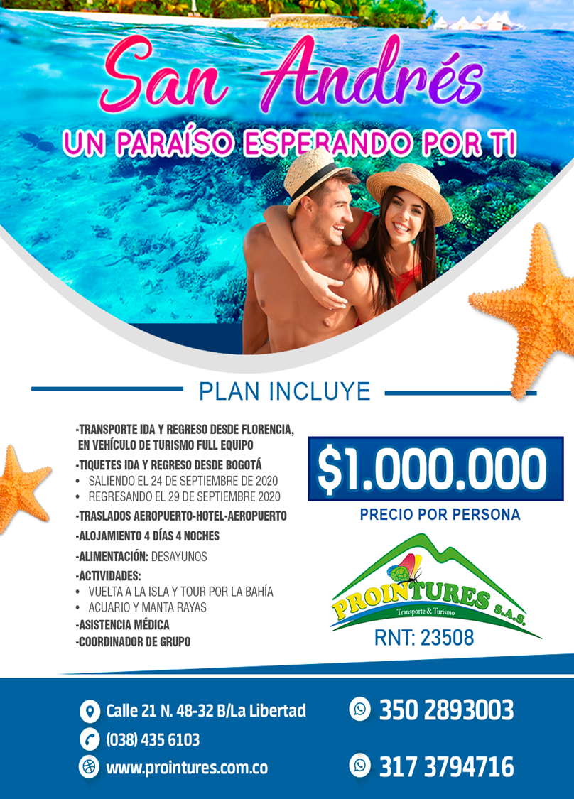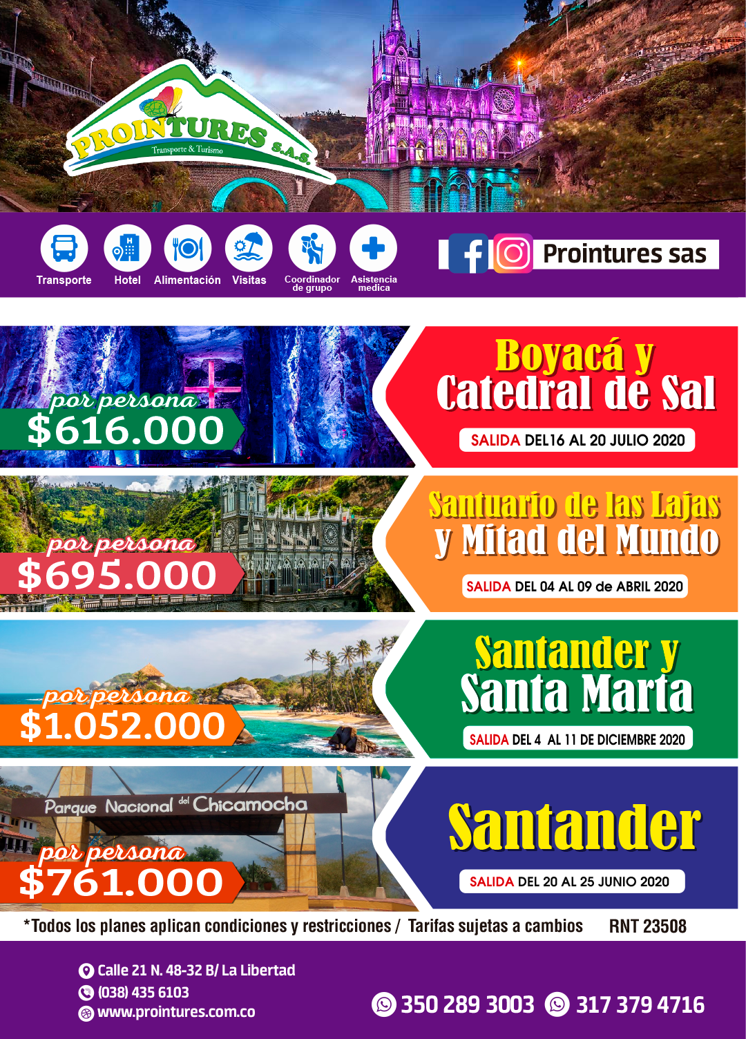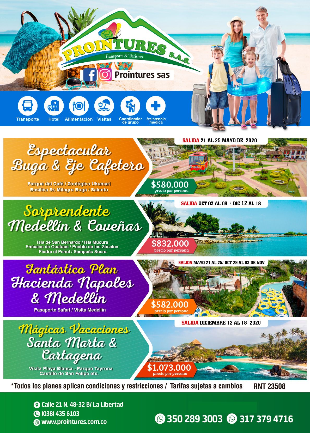 PROINTURES S.A.S agencia de viajes y turismo, ofrecemos ofertas para que viajes a los destinos turisticos mas hermosos que hay en Colombia.
